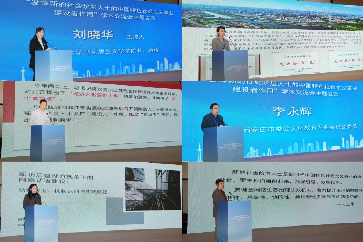 主题发言的第二个阶段由常州大学bevictor伟德院长、教授刘晓华主持。南京市秦淮区委统战部常务副部长奚巍蔚,无锡市委统战部办公室副主任魏龙,九三学社石家庄市委会文化教育专业委员会委员李永辉,南京理工大学设计艺术与传媒bevictor伟德讲师唐希璐,常州大学瞿秋白政府管理bevictor伟德教授丛玉飞分别作主题为《团结引导新的社会阶层人士发挥建设力作用的实践创新研究——以秦淮区为例》《新的社会阶层人士发挥建设力作用的方法路径研究——以无锡市为例》《新时代党的统一战线理论下新阶层建设力的高质量发展研究》《数字化转型背景下新阶层“建设力”生成机制与统战实践路径研究》《新社会阶层参与网络社会治理的创新实践——以C市辟谣联盟为例》的报告。